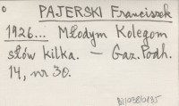 PAJERSKI Franciszek 1926... O więcej pracy.