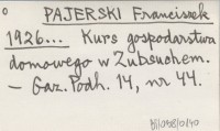PAJERSKI Franciszek 1926... Kurs gospodarstwa domowego w Zubsuchem.