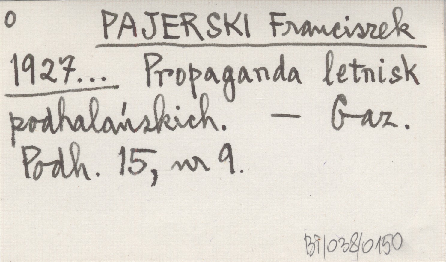 PAJERSKI Franciszek 1927... Propaganda letnisk podhalańskich.