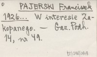 PAJERSKI Franciszek 1927... Z Warszawskiego Ogniska Związku Podhalan.