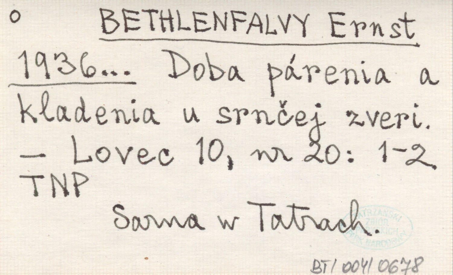 BETHLENFALVY Ernst 1936... Doba párenia a kladenia u srnčej zveri.