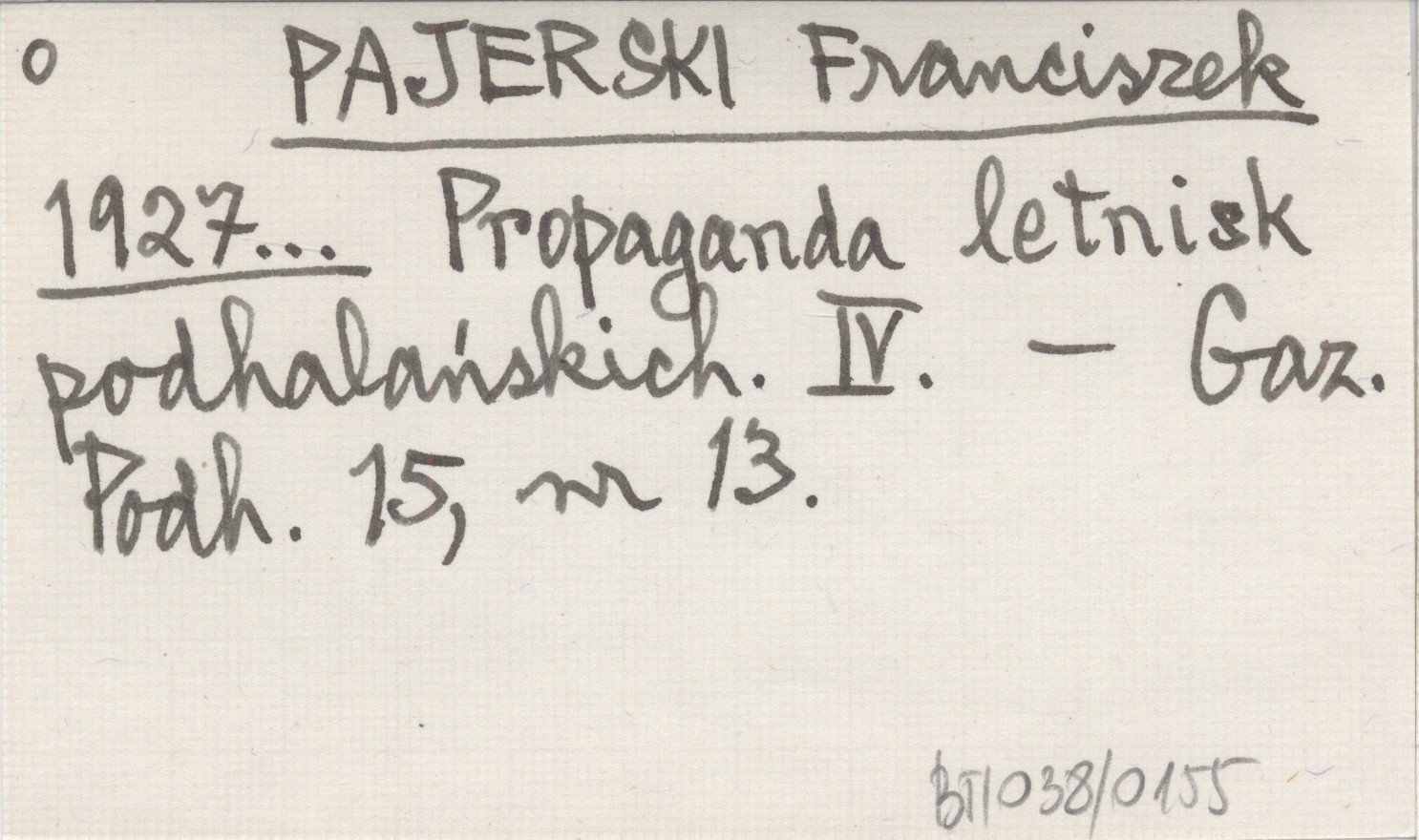 PAJERSKI Franciszek 1927... Propaganda letnisk podhalańskich. IV.