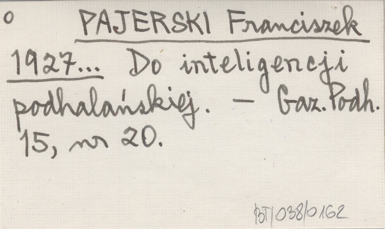 PAJERSKI Franciszek 1927... Do inteligencji podhalańskiej.
