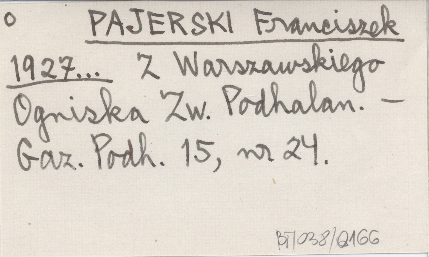 PAJERSKI Franciszek 1927... Z Warszawskiego Ogniska Zw. Podhalan.