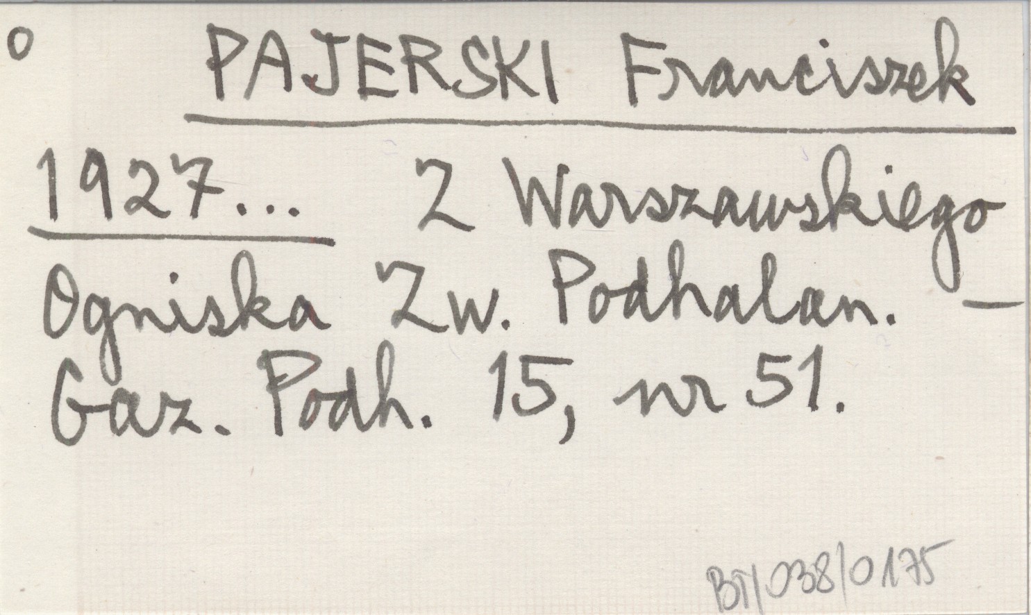 PAJERSKI Franciszek 1927... Z Warszawskiego Ogniska Zw. Podhalan.