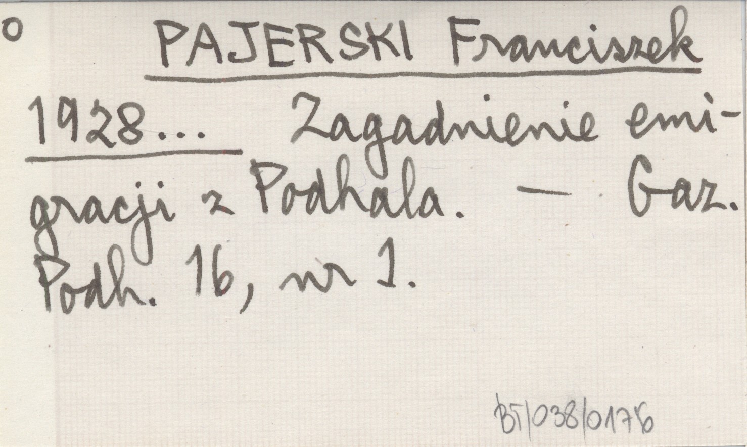PAJERSKI Franciszek 1928... Zagadnienie emigracji z Podhala.