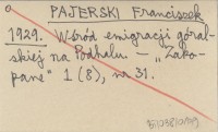 PAJERSKI Franciszek 1929 Wśród emigracji góralskiej na Podhalu.