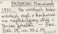 PAJERSKI Franciszek 1931... Na wirchach bukowińskich czyli o konkursie na najładniejszy strój i taniec góralski.