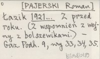 Łazik [PAJERSKI Roman] 1921... Z przed roku. (Z wspomnień z wojny z bolszewikami).