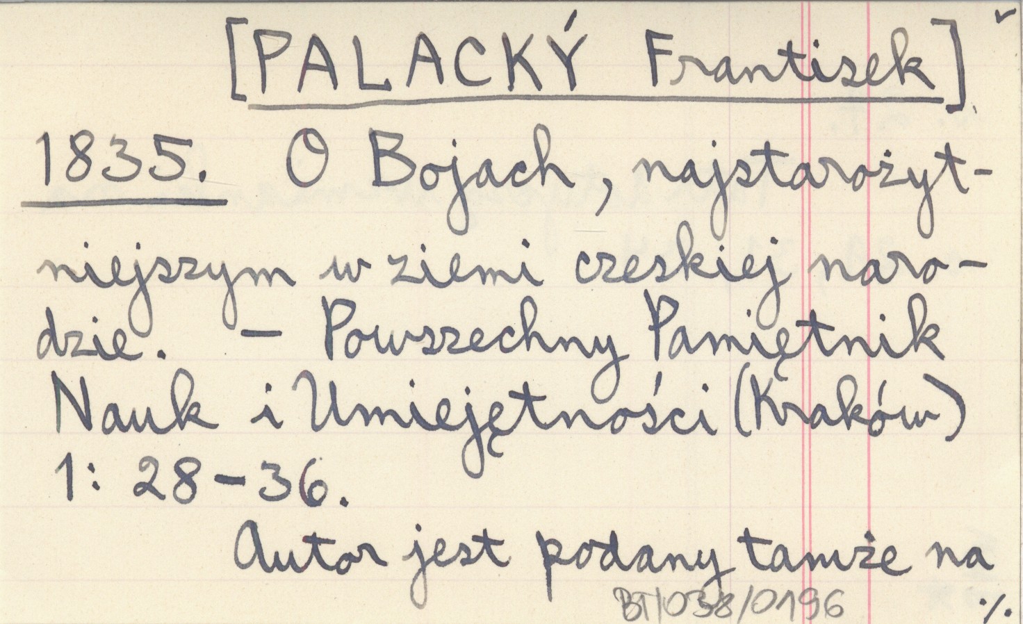[PALACKÝ Frantisek] 1835 O Bojach, najstarożytniejszym w ziemi czeskiej narodzie.