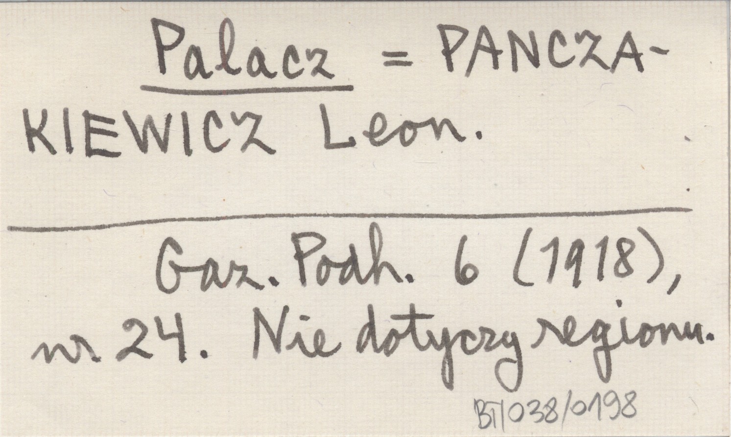 Palacz PANCZAKIEWICZ Leon Gazeta Podhalańska 6 (1918), nr 24. Nie dotyczy regionu.