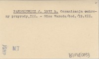 PAKOSIEWICZ J. 1937 b Organizacja ochrony przyrody, III.