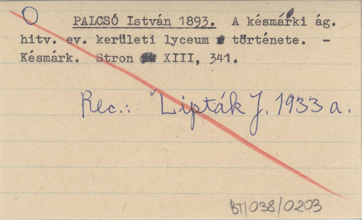 Késmárk , 13 s., 341. REC: LIPTÁK J. 1933 a