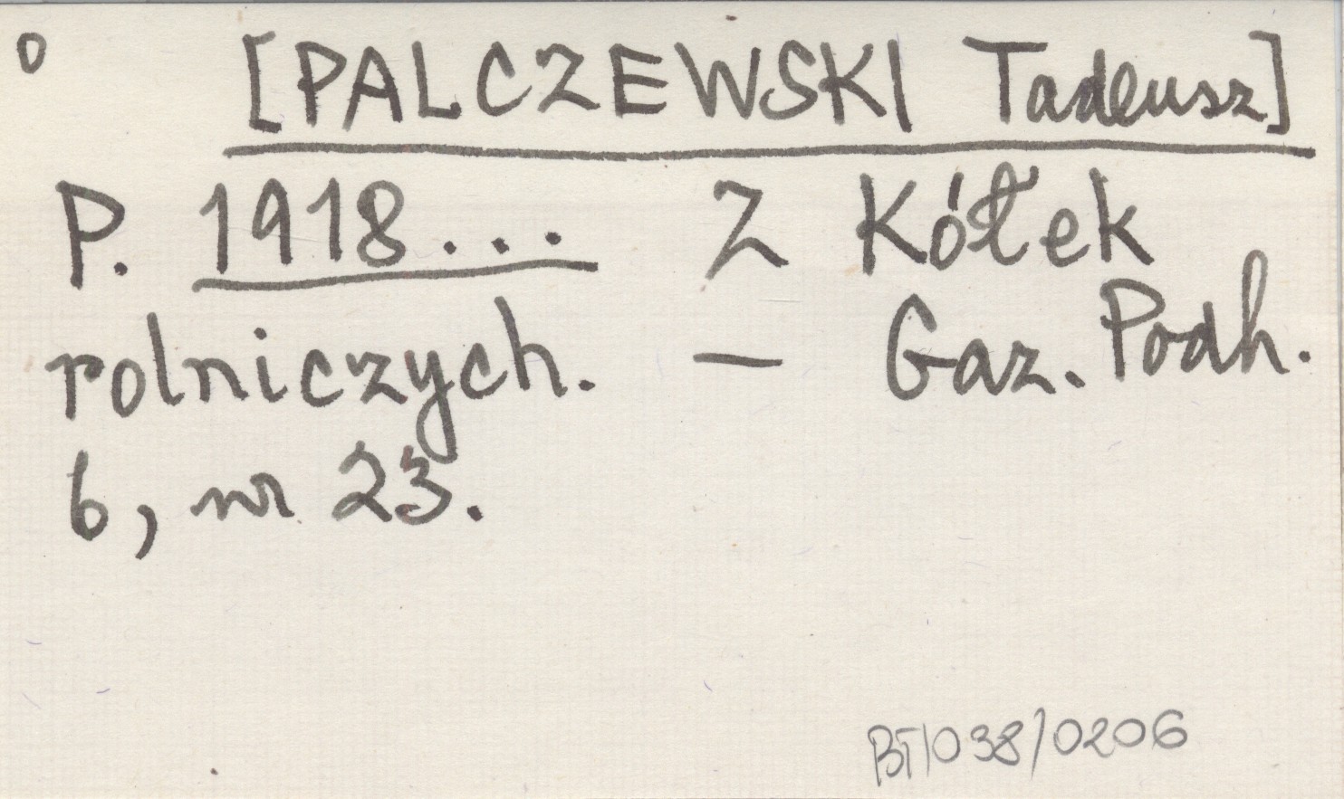 P. [PALCZEWSKI Tadeusz] 1918... Z Kółek rolniczych.