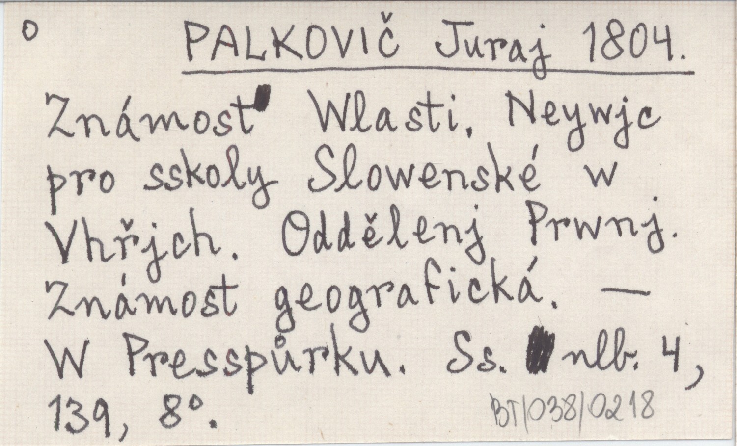 PALKOVIČ Juraj 1804 Známost Wlasti. Neywjc pro sskoly Slowenské w Vhřjch. Oddělenj Prwnj. Známost geografická.