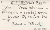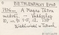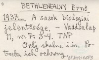 BETHLENFALVY E. 1950 Madártani adatok a Szepessegböl.
