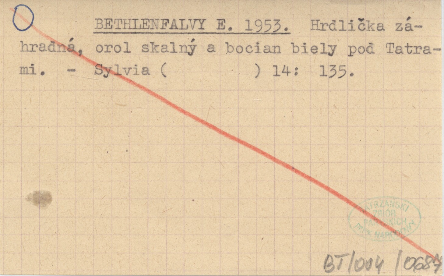 BETHLENFALVY E. 1953 Hrdlička záhradná, orol skalný a bocian biely pod Tatrami.