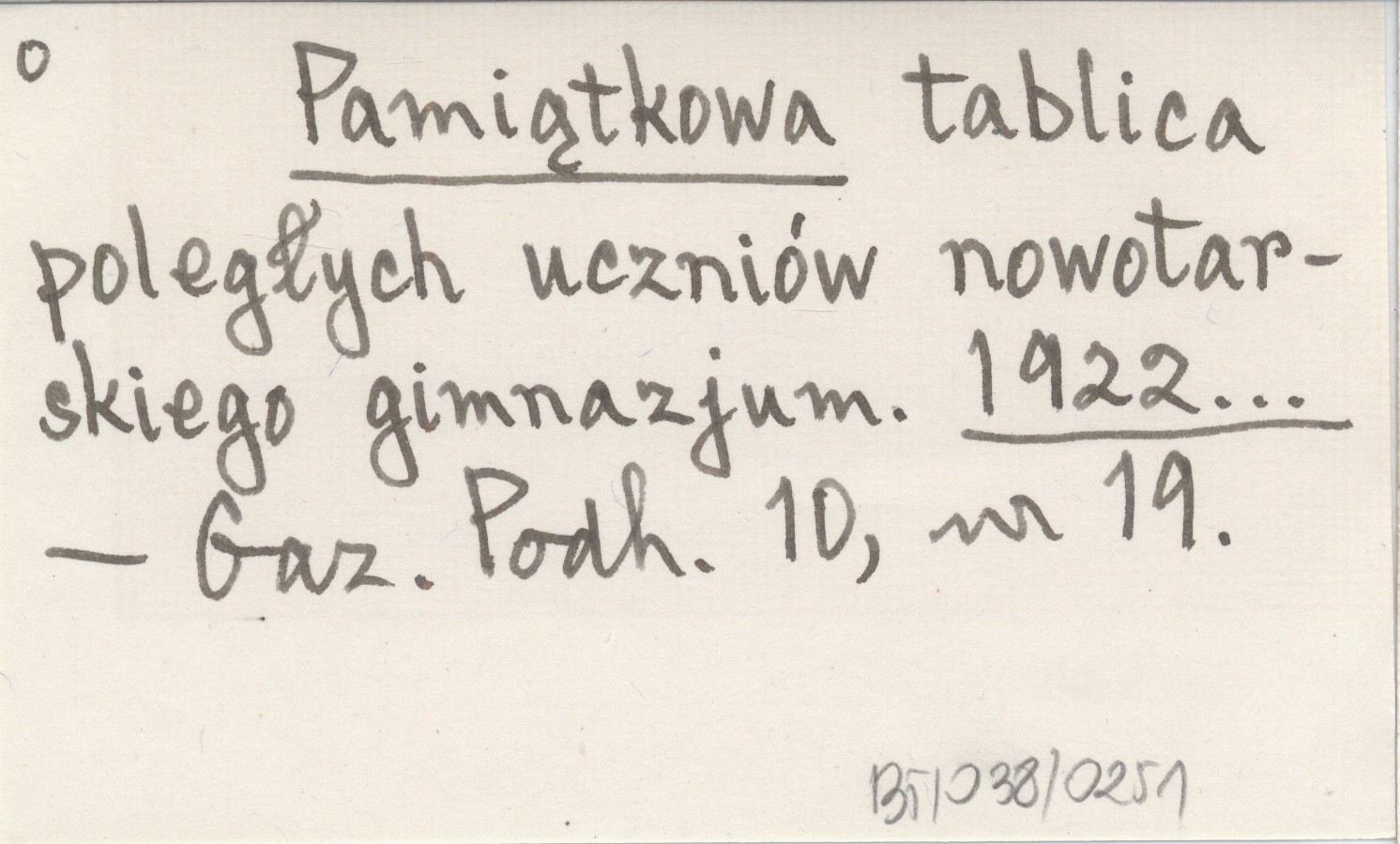 Pamiątkowa tablica poległych uczniów nowotarskiego gimnazjum. 1922...