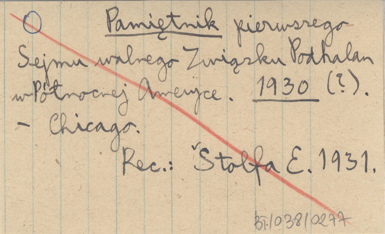 Chicago , REC: ZBOROWSKI J. 1930 d, 1930 g ; STOLFA E. 1931 ;