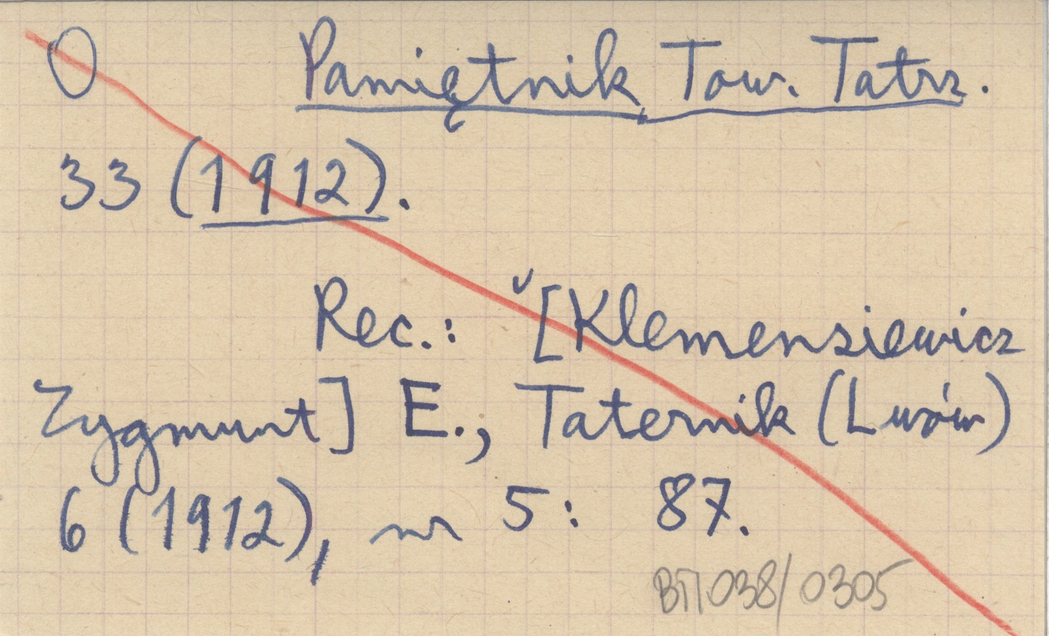 , 33. REC: [KLEMENSIEWICZ Zygmunt] E., Taternik (Lwów) 6 (1912), nr 5: 87