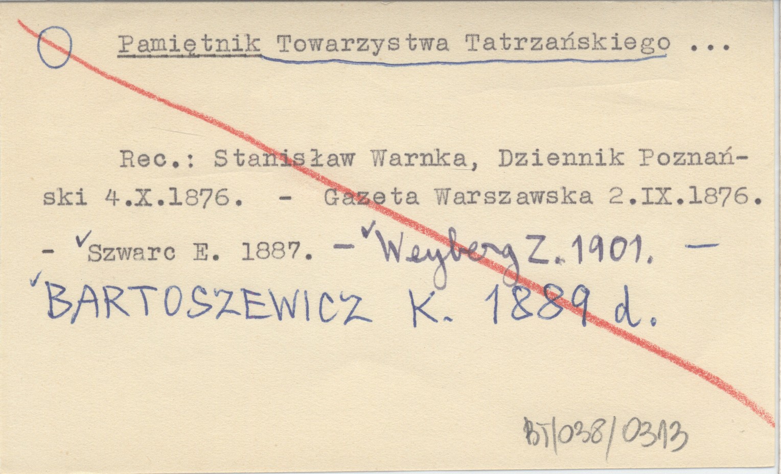 , REC: WARNKA Stanisław, Dziennik Poznański 4 X 1876 ; Gazeta Warszawska 2 IX 1876 ; SZWARC E. 1887 ; WEYBERG Z. 1901 ; BARTOSZEWICZ K. 1889 d ;