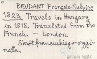 BEUDANT François-Sulpice 1823 Travels in Hungary in 1818. Translated from the French.