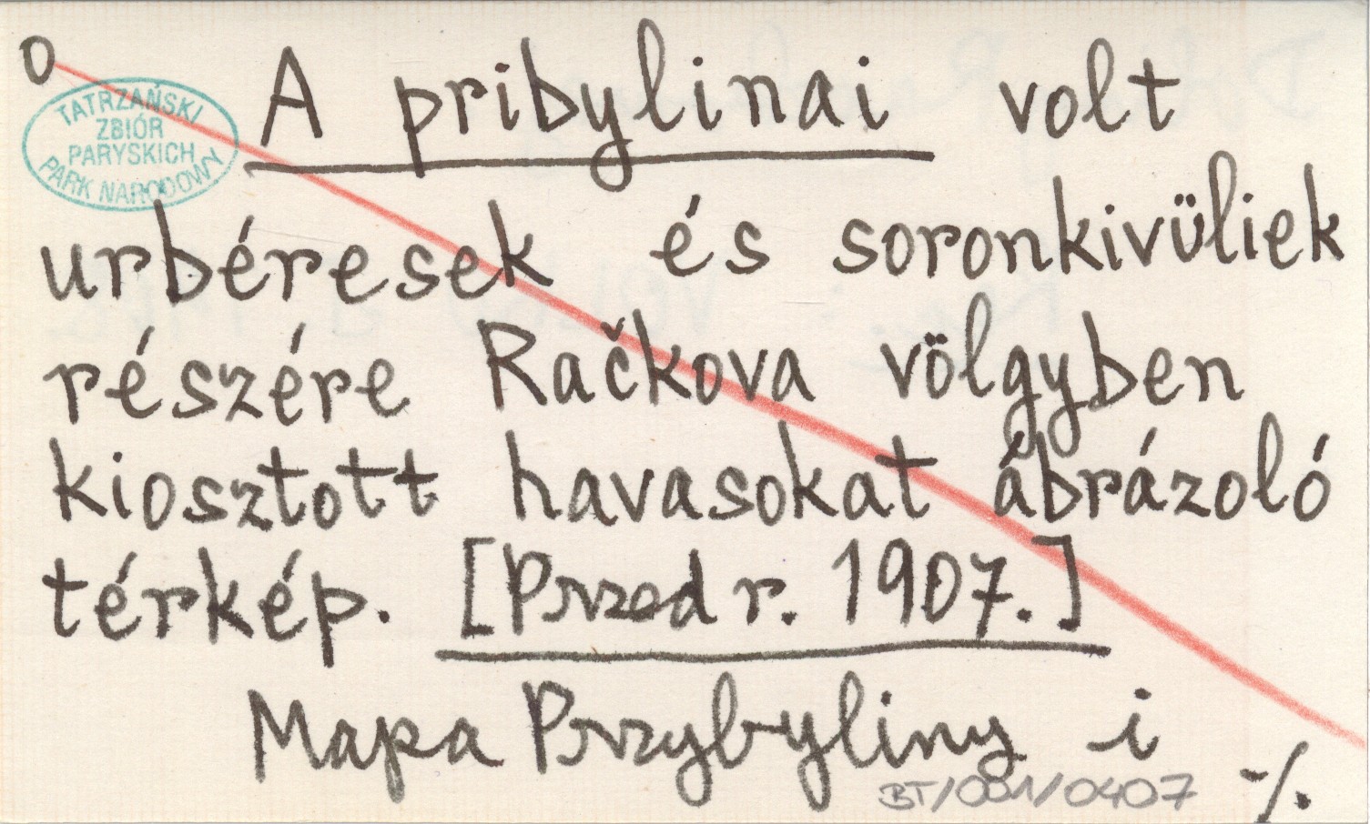 , Mapa Przybyliny i Doliny Raczkowej. REC: VOLKO J. 1908.