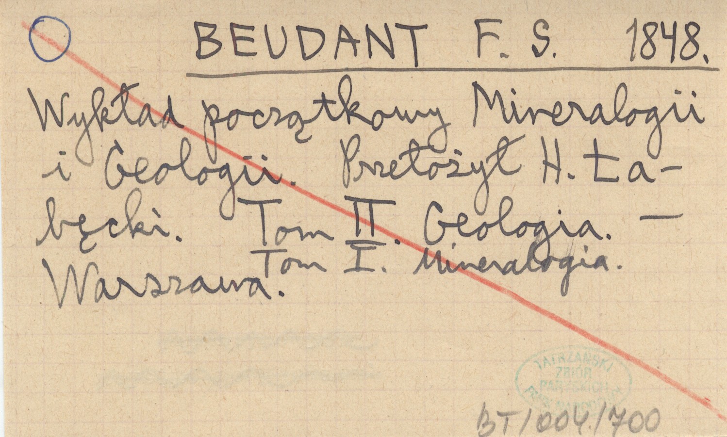 BEUDANT F. S. 1848 Wykład początkowy Mineralogii i Geologii. Przełożył H. Łabęcki.