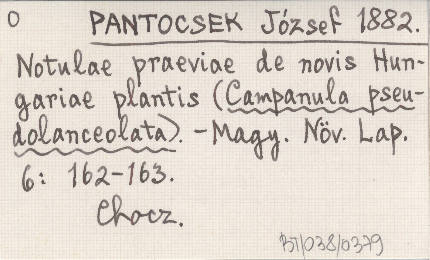 PANTOCSEK József 1882 Notulae praeviae de novis Hungariae plantis (Campanula pseudolanceolata).