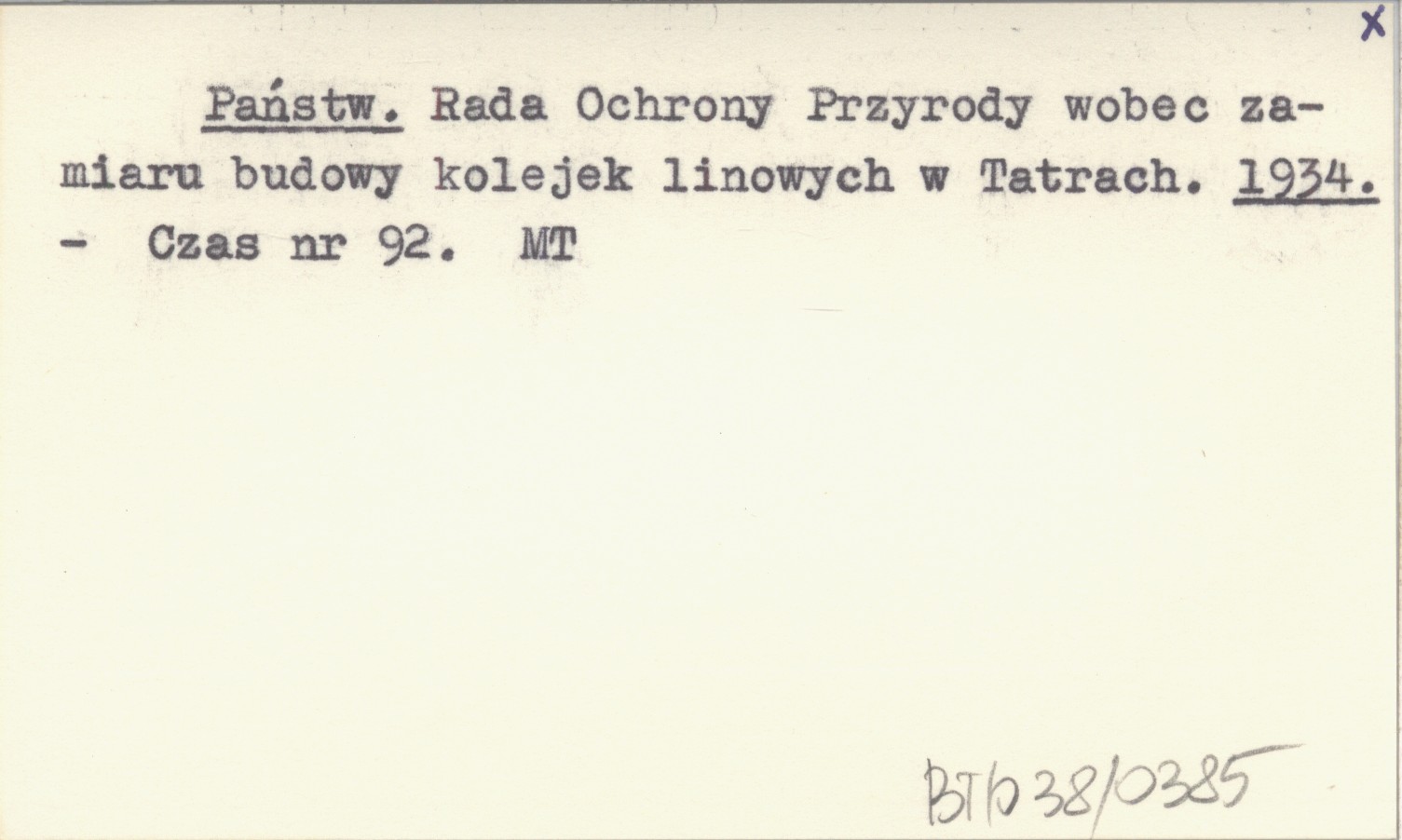 Państw. Rada Ochrony Przyrody wobec zamiaru budowy kolejek linowych w Tatrach. 1934