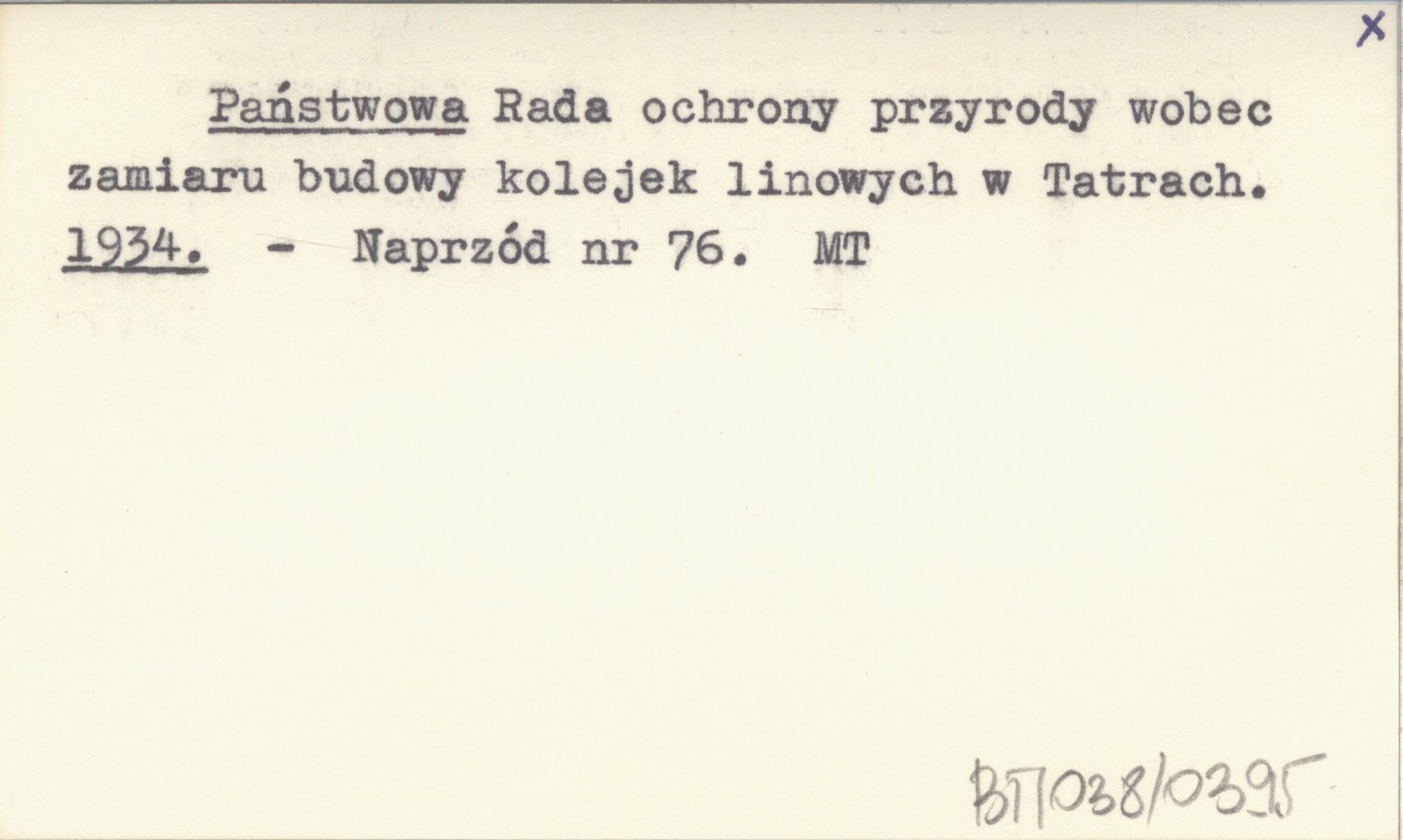 Państwowa Rada ochrony przyrody wobec zamiaru budowy kolejek linowych w Tatrach. 1934