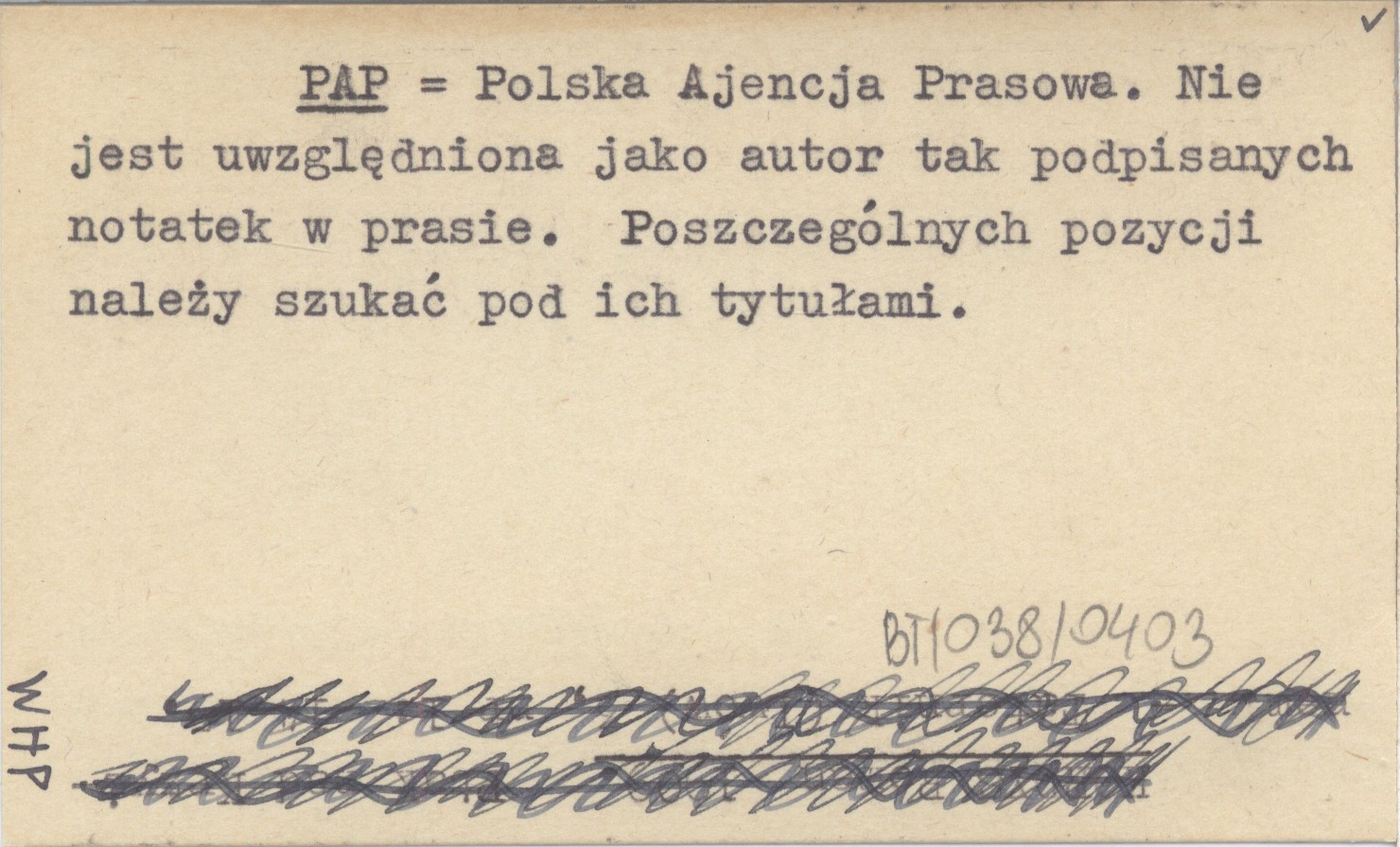 Polska Ajencja Prasowa. Nie jest uwzględniona jako autor tak podpisanych notatek w prasie. Poszczególnych pozycji należy szukać pod ich tytułami.