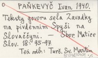 PAŇKEVYČ Ivan 1940 Teksty govoru sela Zavadky na pivdennim Spyši na Slovaččyni.