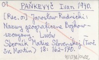 PAŇKEVYČ Ivan 1940 Jarosław Rudnicki: Nazwy geograficzne Bojkowszczyzny. Lwów.