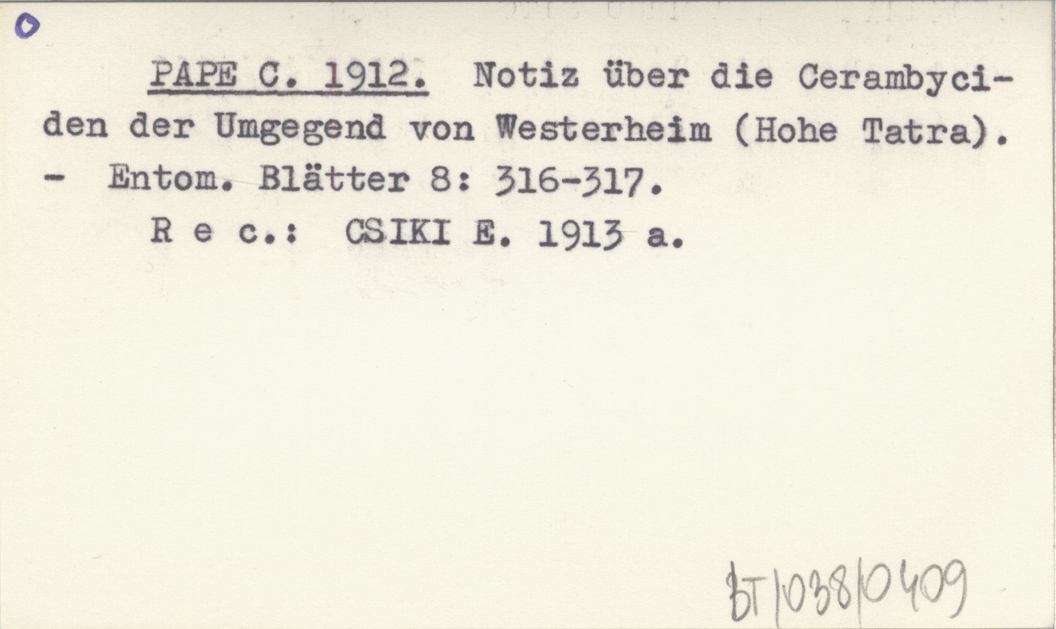 PAPE C. 1912 Notiz über die Cerambyciden der Umgegend von Westerheim (Hohe Tatra).