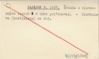 PAPÁNEK F. 1937 Študia o slovenských lesoch v dobe poľadovej.