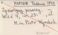 PAPIER Tadeusz 1947 Życiorysy pisarzy.