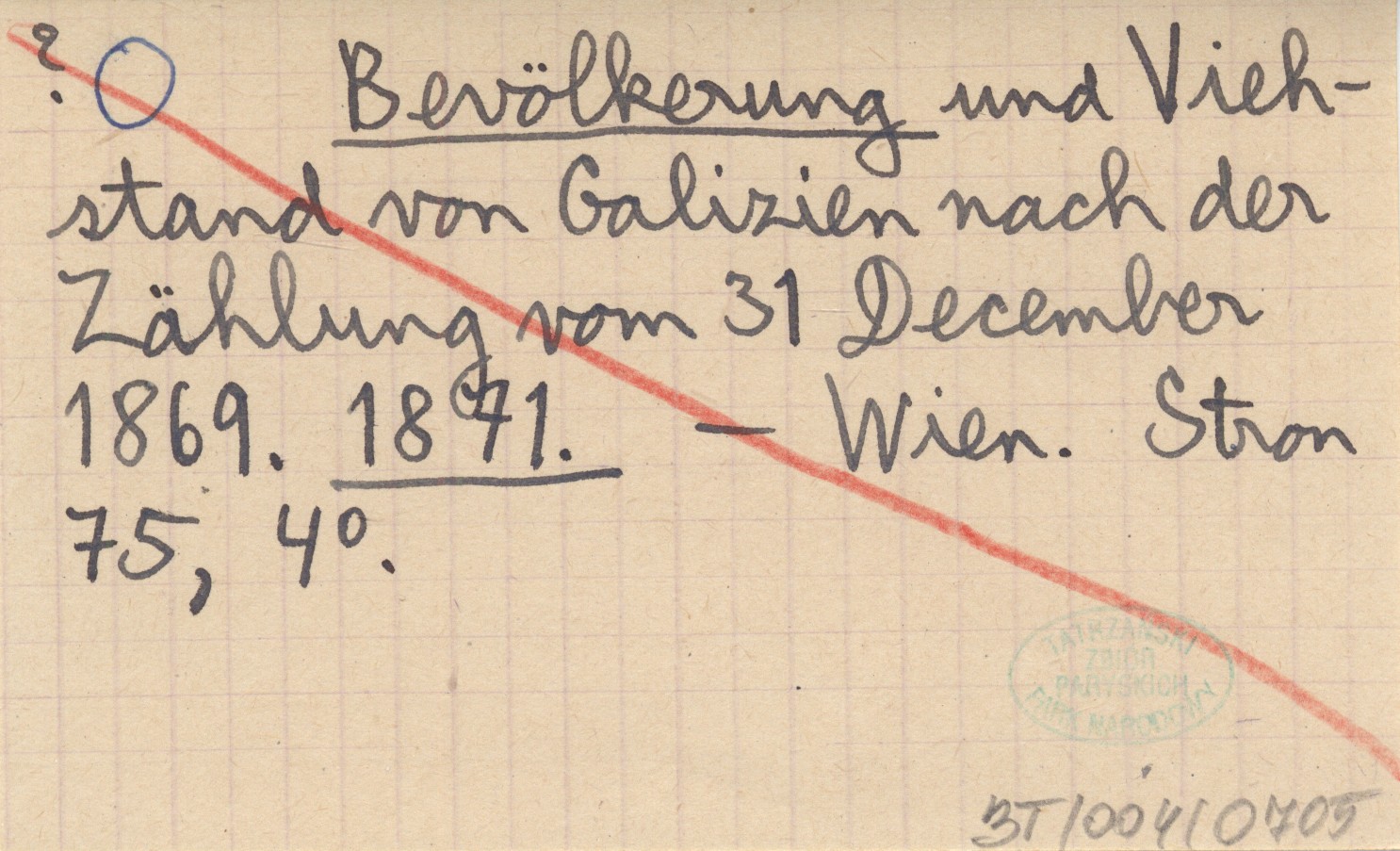 Bevölkerung und Viehstand von Galizien nach der Zählung vom 31 December 1869. 1871