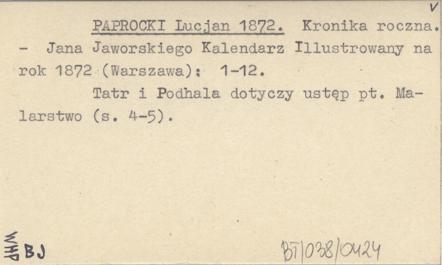 Jana Jaworskiego Kalendarz Illustrowany na rok 1872 (Warszawa) , S. 1-12. Tatr i Podhala dotyczy ustęp pt. Malarstwo (s. 4-5).