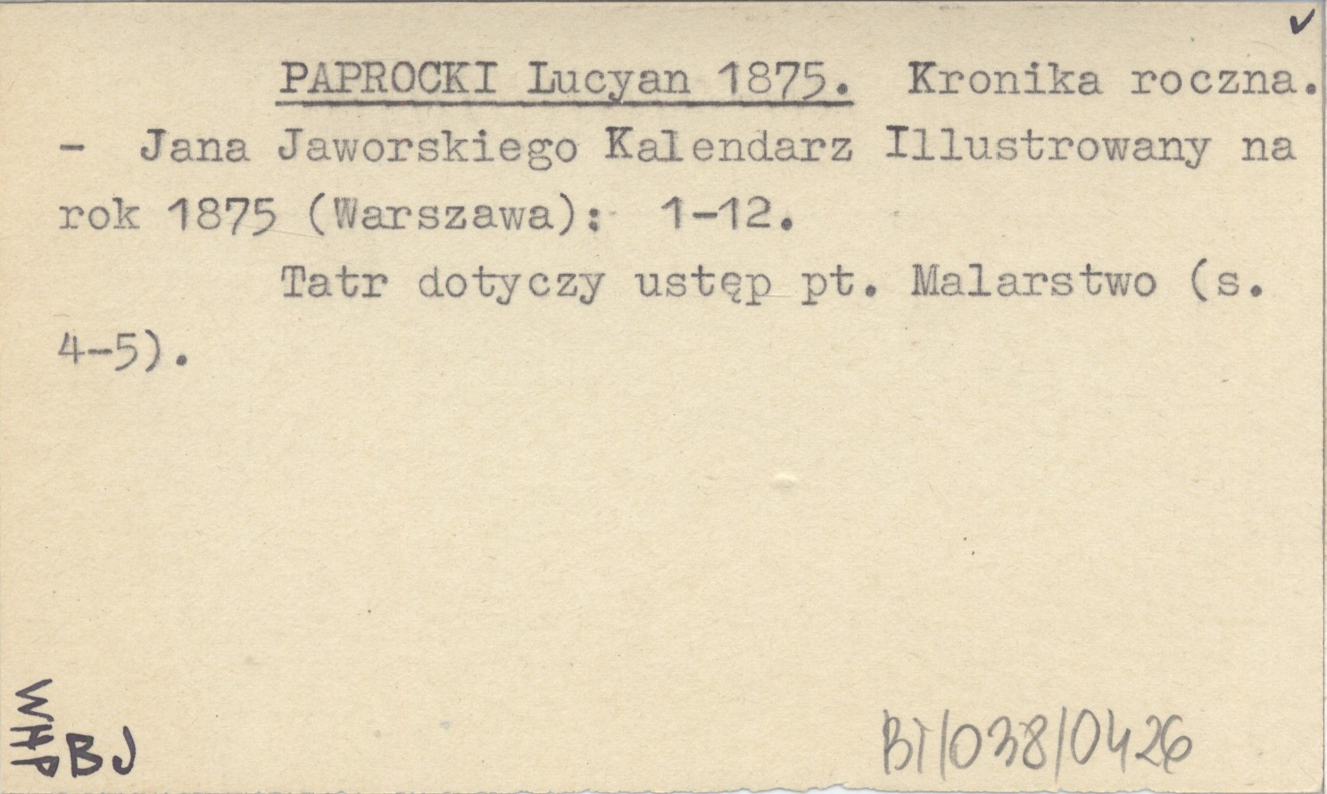 Jana Jaworskiego Kalendarz Illustrowany na rok 1875 (Warszawa) , S. 1-12. Tatr dotyczy ustęp pt. Malarstwo (s. 4-5).