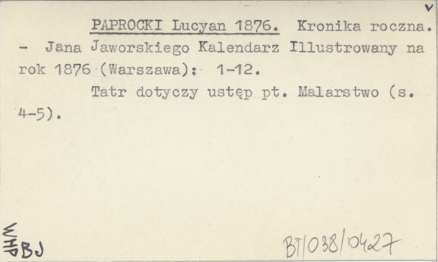 Jana Jaworskiego Kalendarz Illustrowany na rok 1876 (Warszawa) , S. 1-12. Tatr dotyczy ustęp pt. Malarstwo (s. 4-5).
