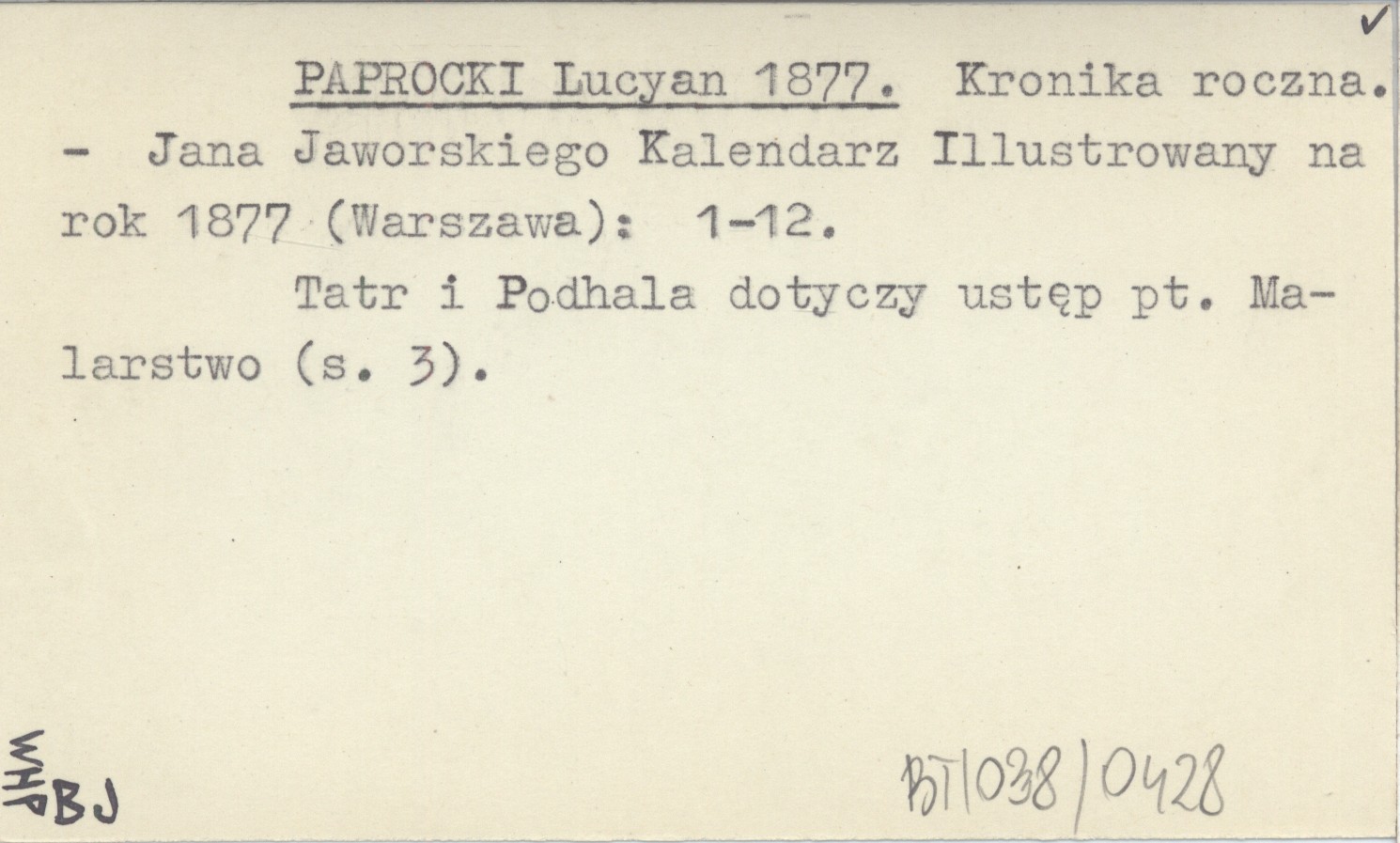 Jana Jaworskiego Kalendarz Illustrowany na rok 1877 (Warszawa) , S. 1-12. Tatr i Podhala dotyczy ustęp pt. Malarstwo (s. 3).