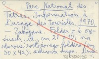 Parc National des Tatras. Information á l'usage des touristes. 1970