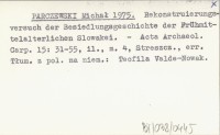 PARCZEWSKI Michał 1975 Rekonstruierungsversuch der Besiedlungsgeschichte der Frühmittelalterlichen Slowakei.