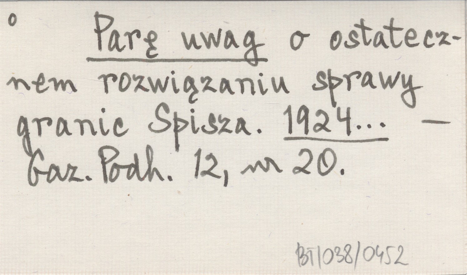 Parę uwag o ostatecznem rozwiązaniu sprawy granic Spisza. 1924...