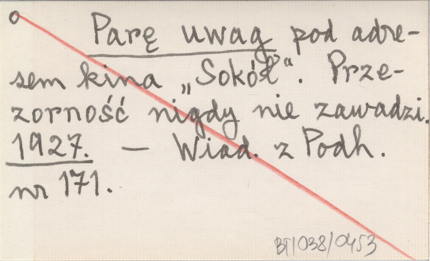 Parę uwag pod adresem kina "Sokół". Przezorność nigdy nie zawadzi. 1927