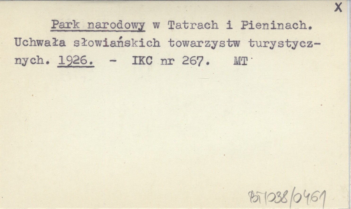 Park narodowy w Tatrach i Pieninach. Uchwała słowiańskich towarzystw turystycznych. 1926
