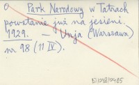Park Narodowy w Tatrach. 1929