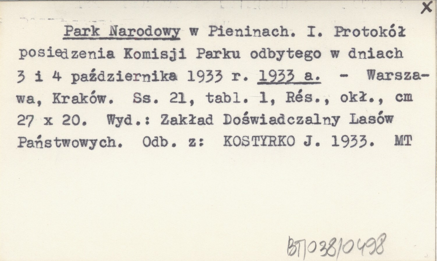 Park Narodowy w Pieninach. I. Protokół posiedzenia Komisji Parku odbytego w dniach 3 i 4 października 1933 r. 1933 a