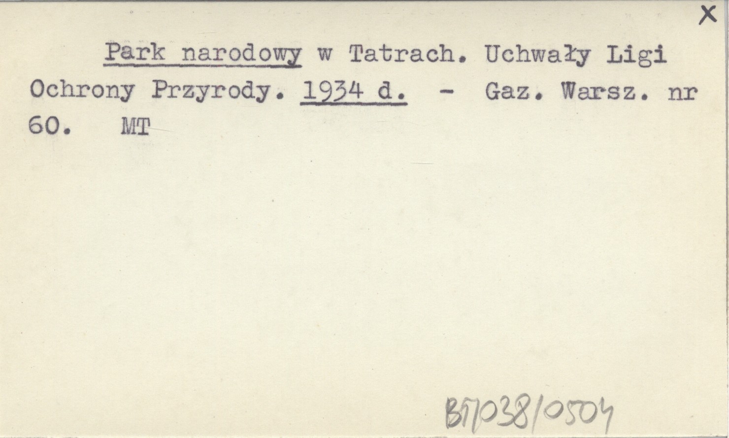 Park narodowy w Tatrach. Uchwały Ligi Ochrony Przyrody. 1934 d